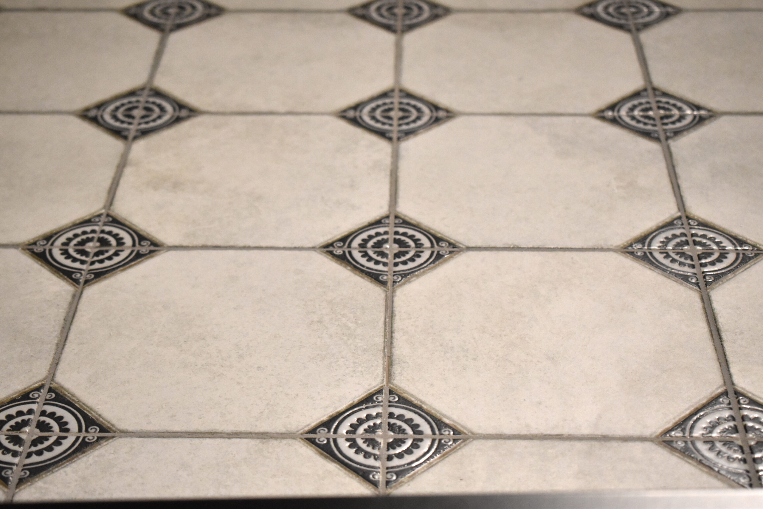 Ce modèle bénéficie d’un format prédécoupé où les cabochons sont intégrés à l’intérieur même du carreau. Cela signifie que les joints visibles ne séparent pas chaque petit élément individuellement, mais correspondent au dessin imprimé sur la pièce entière. Résultat : une pose rapide, esthétique et sans surépaisseur, avec un rendu parfaitement aligné, comme si chaque cabochon avait été posé un à un. Ce type de jointement interne permet de gagner du temps à la pose tout en conservant l’élégance des sols traditionnels. Associez-le à un joint ton sur ton pour un effet discret, ou à un joint contrasté pour renforcer l’effet graphique du motif.